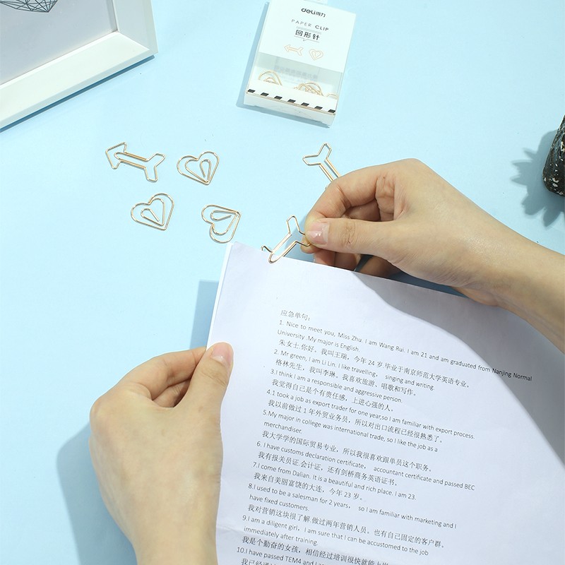 • 商品名称:得力0057异形回形针(玫瑰金)(12枚/盒)