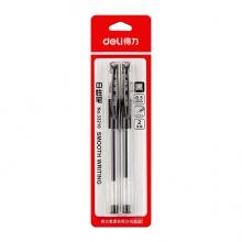 得力33210中性笔0.5mm半针管(黑)(2支/卡)