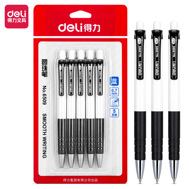 得力6509圆珠笔0.7mm子弹头(蓝)(5支/卡)