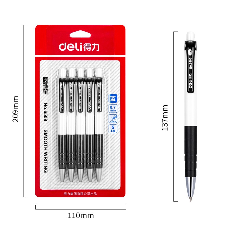 • 商品名称:得力6509圆珠笔0.7mm子弹头(蓝)(5支/卡)