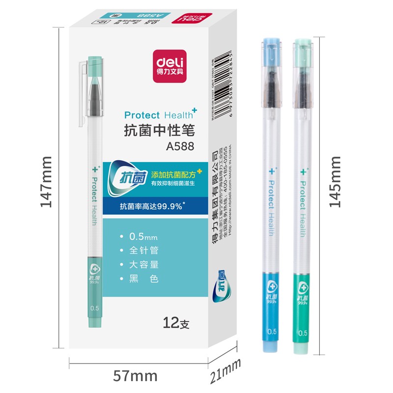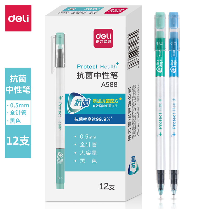• 商品名称:得力抗菌系列A588学生中性笔0.5mm全针管黑(黑)(支)