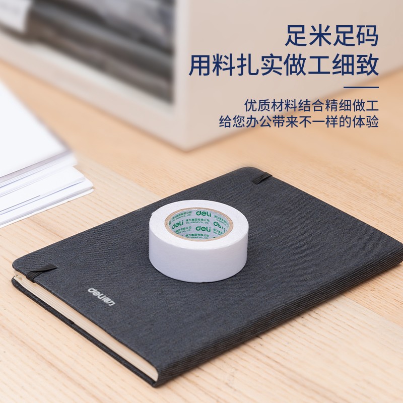 得力30436小卷芯棉纸双面胶带18mm×10y×80um(白色)(1卷/袋)
