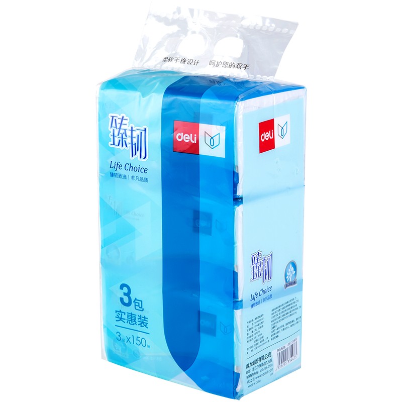 • 商品名称:得力MR3150-01软包抽取式面巾纸(白)(3包/提)