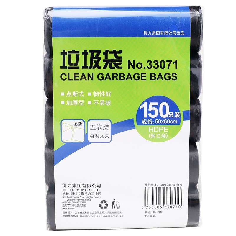 • 商品名称:得力33071 垃圾袋(黑)(5卷/套) 50×60cm八角底