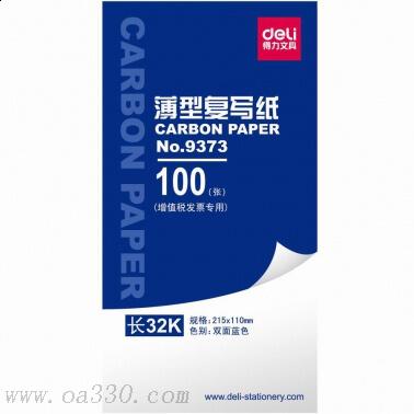 • 商品名称:得力9373 薄型复写纸 增值税发票专用复写纸 双面蓝色 32K 100张/盒蓝纸