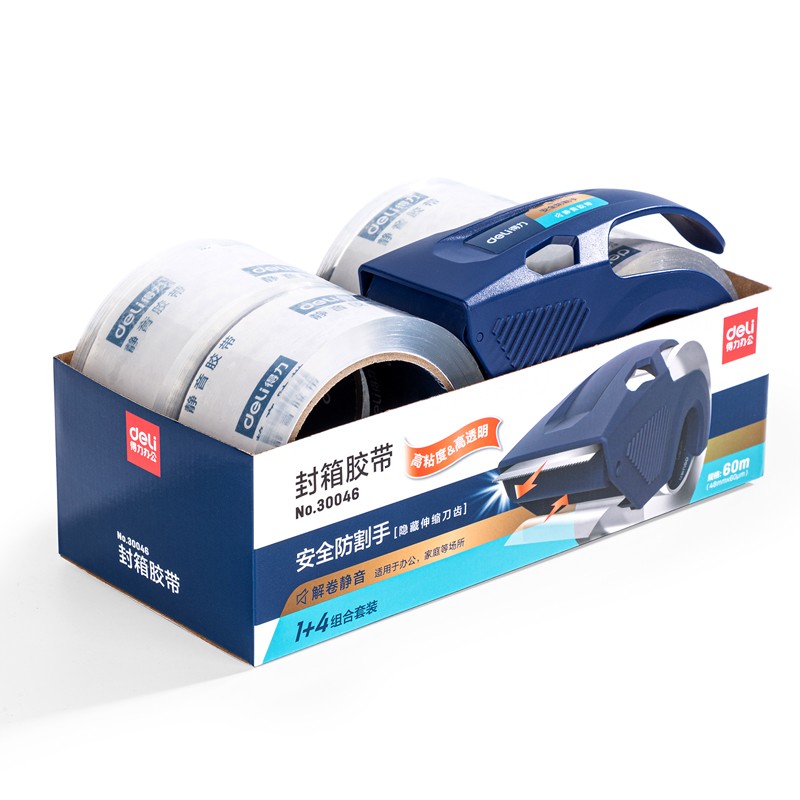 • 商品名称:得力30046静音封箱胶带套装48mm×60m×60μm(1盒/pcs)(水晶)