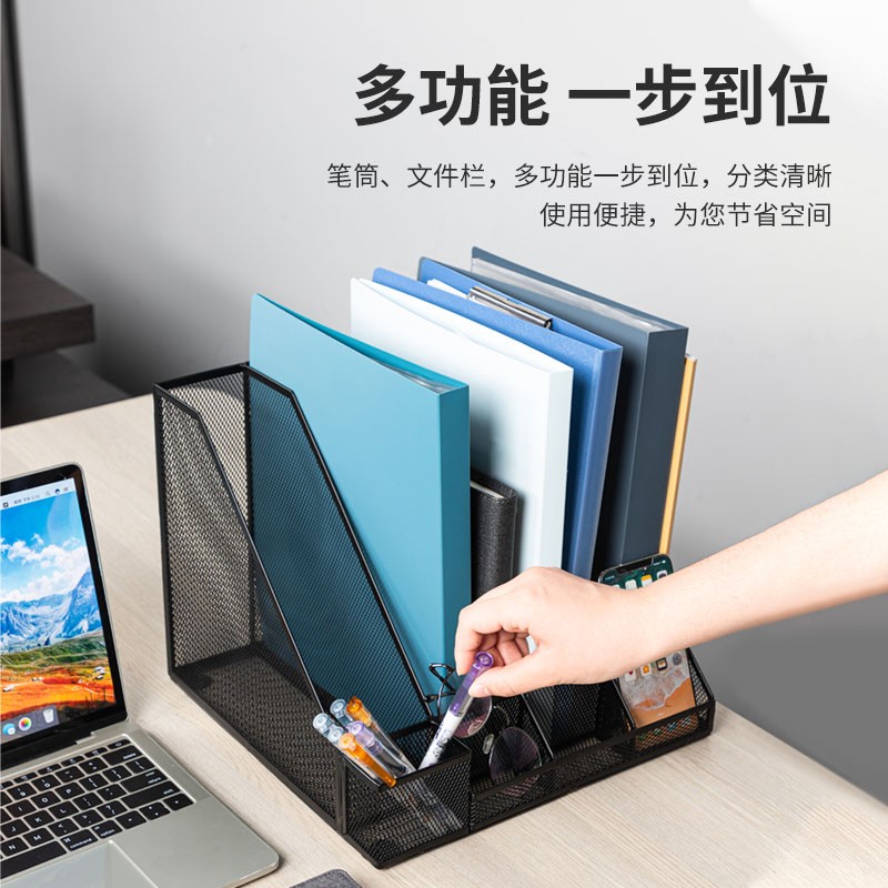 • 商品名称:得力78988四联金属网状文件框带笔筒(黑)(个)