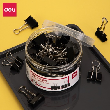 • 商品名称:得力8564-4#黑色长尾票夹25mm筒装(黑)(48只/筒)