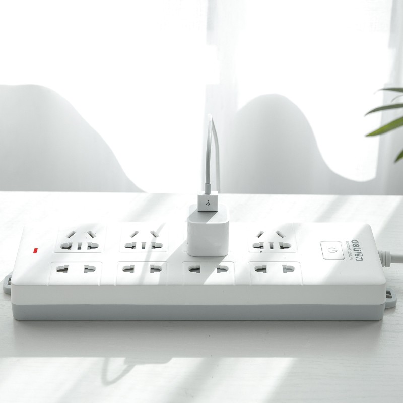 得力18259插座_4+4_5米_PVC袋装(白)(只)