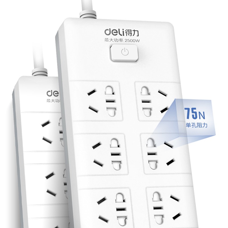 得力18262插座_8组_3米_PVC袋装(白)(只)