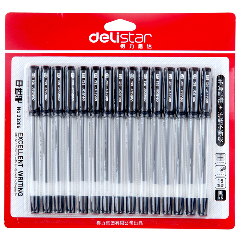 • 商品名称:得力33206中性笔0.5mm半针管(黑)(15支/卡)