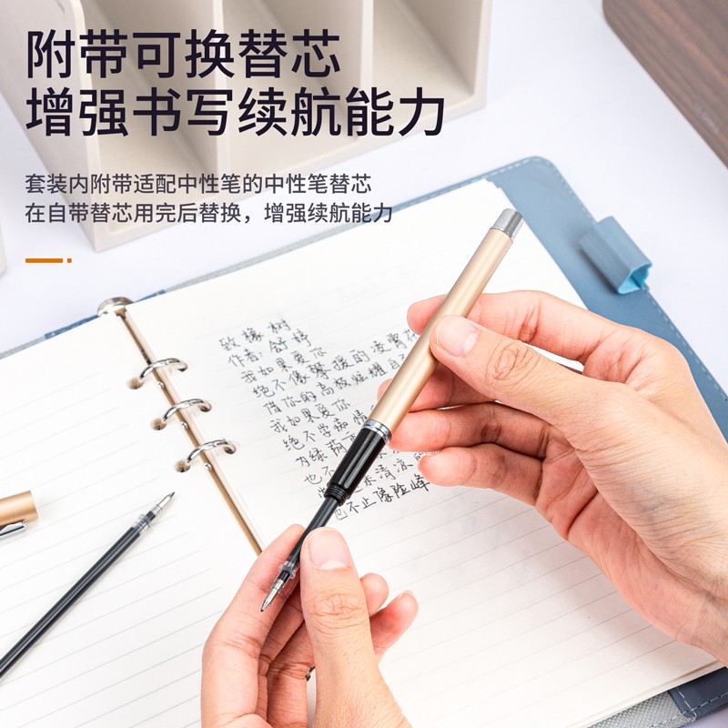 得力33234中性笔0.5mm子弹头(黑色)(1笔+1芯/卡)