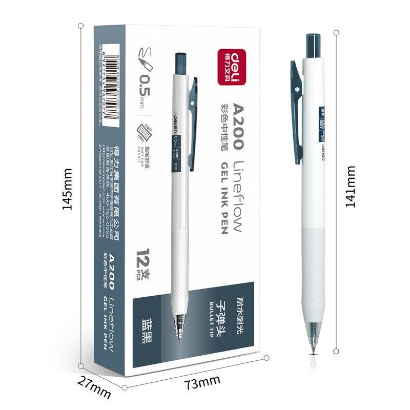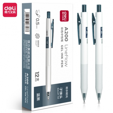• 商品名称:得力A200蜜糖色中性笔0.5mm子弹头(蓝黑)(蓝黑)(支)