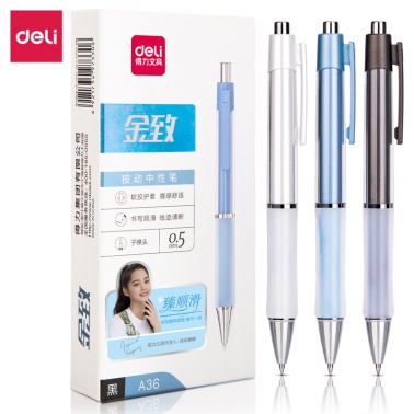 • 商品名称:得力A36按动中性笔0.5mm子弹头(臻顺滑)(黑)