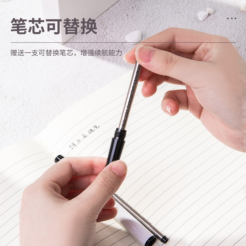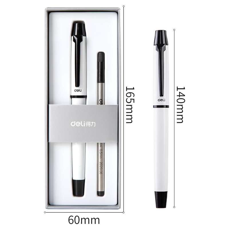 • 商品名称:得力S153宝珠笔套装0.5mm子弹头(白色)(1支笔+1支笔芯/盒)