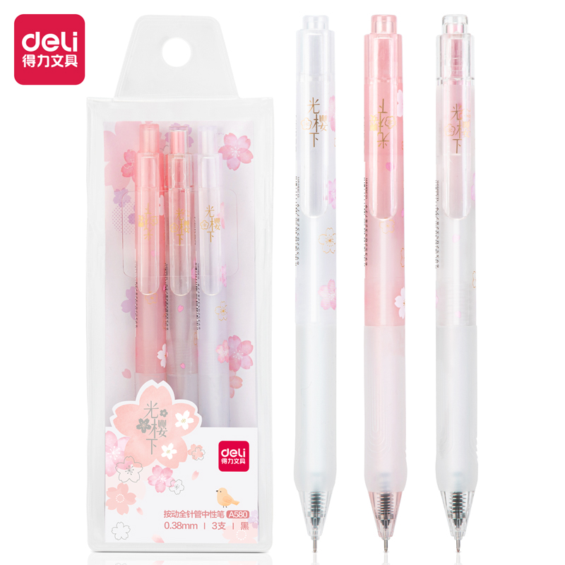 • 商品名称:得力A580学生按动中性笔0.38mm全针管(黑)(3支/袋)