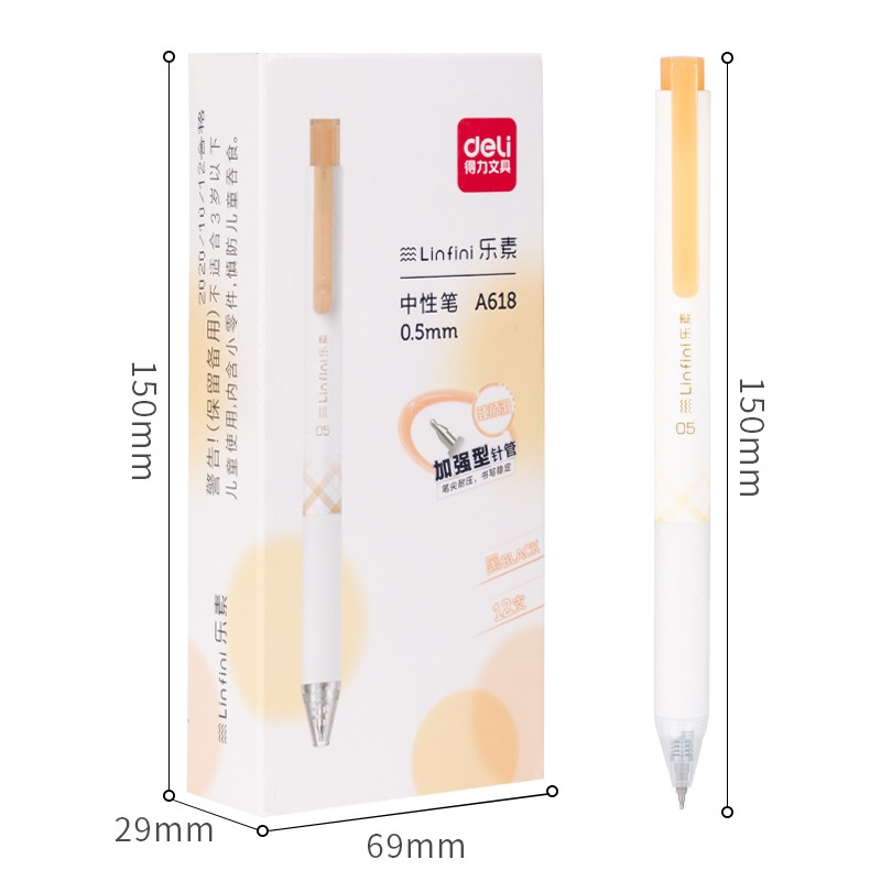• 商品名称:得力A618学生中性笔0.5mm按动加强型针管(黑)(支)
