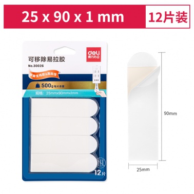 • 商品名称:得力30026可移除易拉胶25mm×90mm(12片/卡)(白色)(12片/卡)