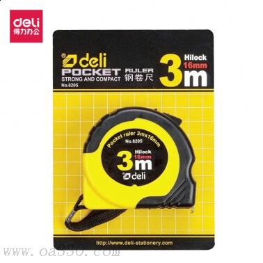 • 商品名称:得力8205 3米/8206 5米钢卷尺 测量精准中碳钢尺