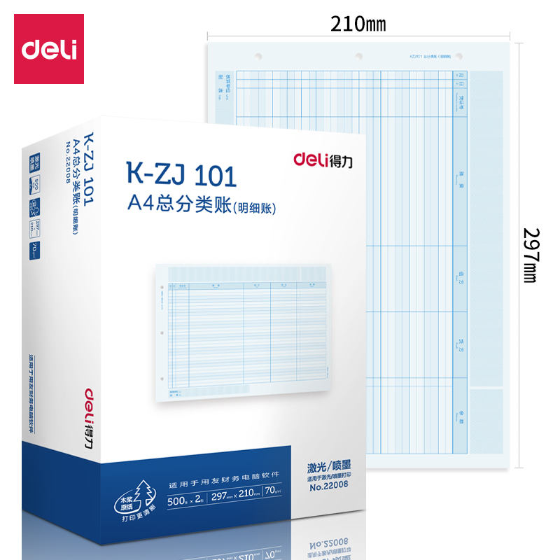 • 商品名称:得力22008KZJ101A4总分账(混)(1000张/盒)