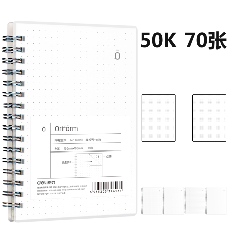 • 商品名称:得力L5070_PP螺旋本(零系列方格)