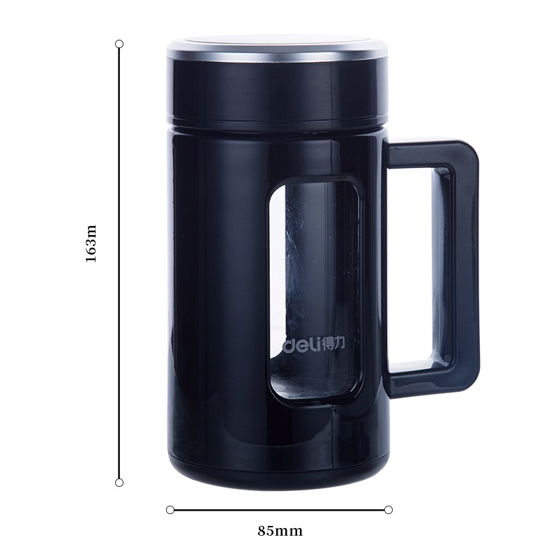 • 商品名称:得力6137玻璃杯(黑)450ml杯盖PC