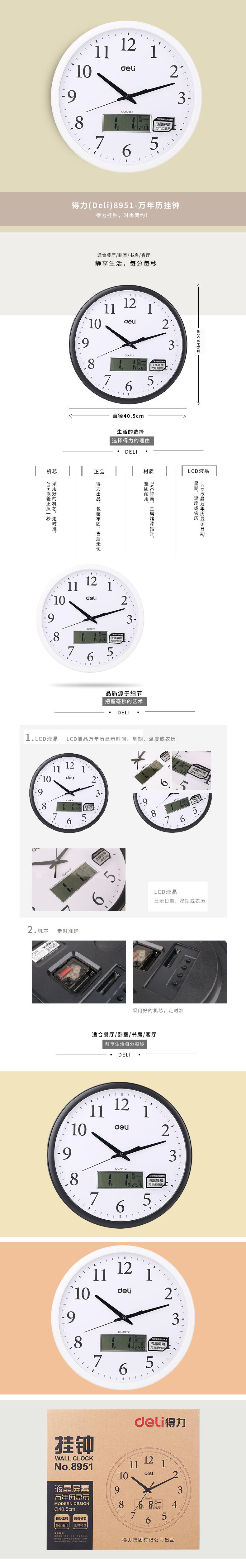• 商品名称:得力8951挂钟(深灰)40.5cm万年历功能(16寸)