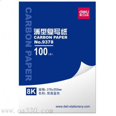 得力9378薄型复写纸双面蓝色8K(25.5×37cm)100张/盒蓝纸