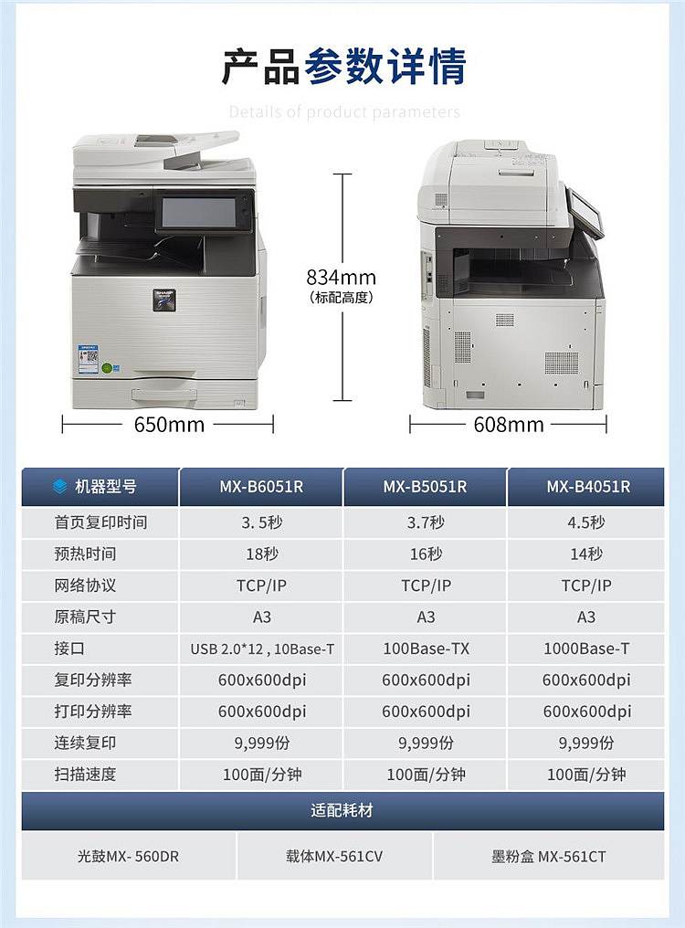 • 商品名称:夏普MX-B4051R黑白复印机(RSPF双面送稿器)(台)